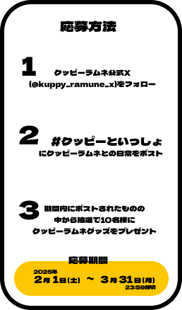 小さくて可愛いクッピーラムネは 持ち運びにも最適! おやつタイムやおでかけなど いろんなところに連れていってね クッピーラムネとの日常を #クッピーといっしょでシェアしよう! 抽選で10名様に クッピーラムネグッズをプレゼント!